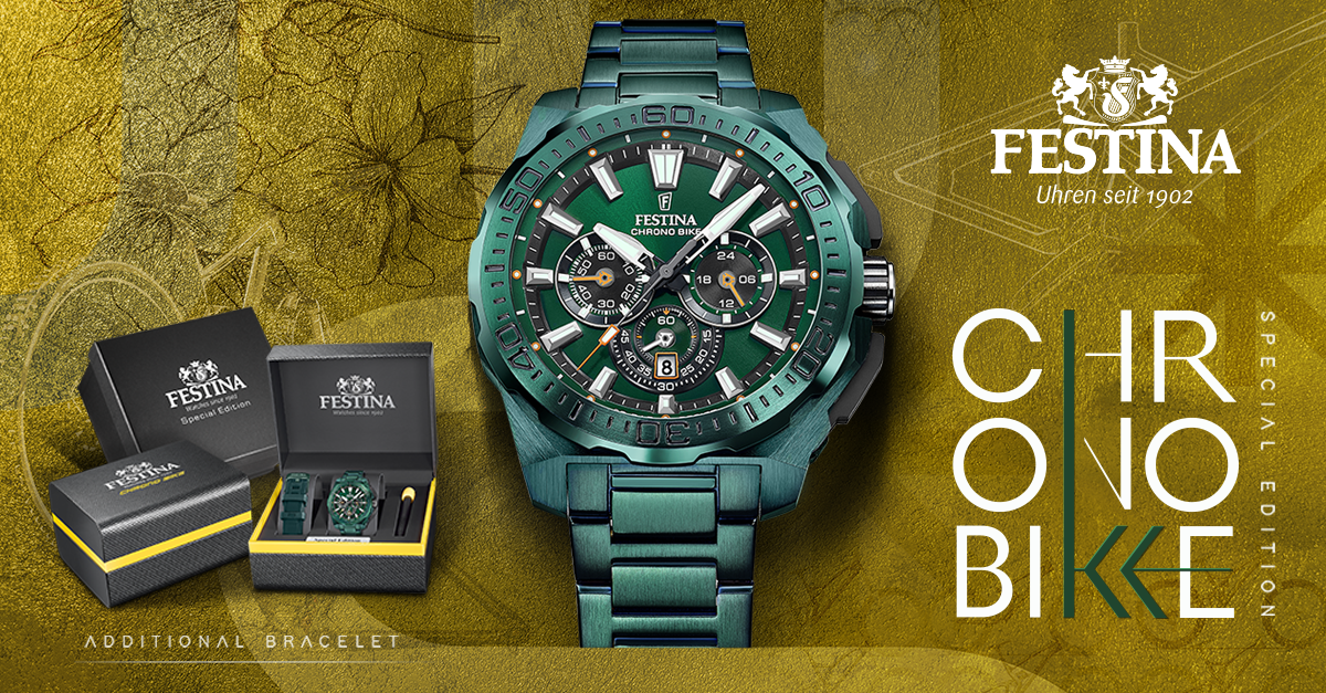 Weiter für alle Sportbegeisterten haben wir von der Firma FESTINA exklusiv die Chrono Bike Edition in allen bunten Frühlings-Farben.